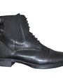 Confort et souplesse du cuir de vachette lisse. Lacets élastiques. Taquets d’éperon. Larges élastiques latéraux. Fermeture arrière avec rabat pression. Semelle extérieure élastomère cousue Blake. Semelle intérieure confort, cuir et mousse EVA.