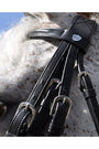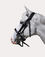 Muserolle Pull Back : une meilleure répartition des points d’appuis pour le confort de votre cheval ! Frontal et muserolle pull back, larges, doublés et bombés 1/2 rond. Têtière anatomique, large, doublée et estampée F&C. Bouclerie inox gravée F&C. Livré avec une paire de rênes lisses, et une paire de rênes hunter.