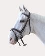 Bridon en cuir plat doublé bombé. Muserolle combinée. Bouclerie inox. Rènes eventer.