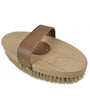 Brosse pour le corps en bois de hêtre et 20 mm de poils 100 % crin de cheval. Conçue avec une lanière en cuir pour une meilleure prise en main.