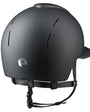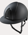 Casque d’équitation avec une coque extérieure en ABS laqué et un intérieur en EPS offrant une haute résistance aux chocs. La protection arrière allongée suit la ligne ergonomique de la nuque, protégeant l’une des zones les plus sensibles sans limiter les mouvements. La jugulaire en cuir écologique, dotée d’un système de fixation à 5 points, assure une stabilité maximale.