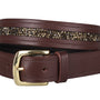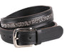 Ceinture en cuir finie avec strass dispersés et boucle en acier inoxydable.