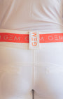 Toujours avec sa matière élastique, sa fermeture hyper pratique, et les gros logos GEM en répétition.