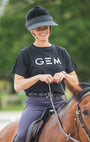 Toujours avec sa matière élastique, sa fermeture hyper pratique, et les gros logos GEM en répétition.