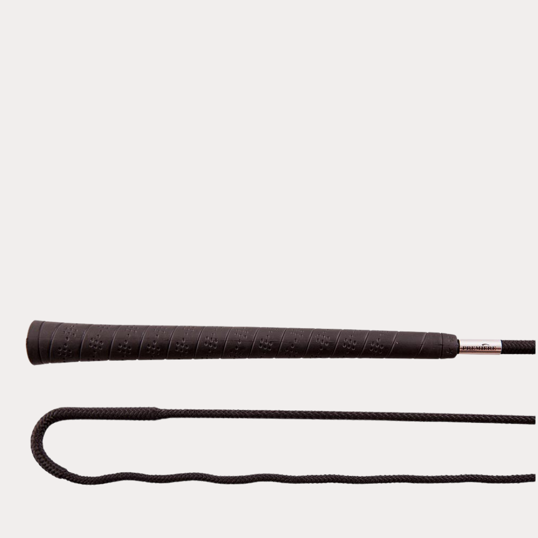En verre de fibre, nylon tressé se continuant en lanière et poignée synthétique.
