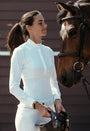Le design a été spécialement pensé pour amener plus de confort. Avec ses découpes ergonomiques, la chemise s’adapte parfaitement aux mouvements du corps. La forme du poignet et du col a été étudiée pour libérer les gestes du cavalier en concours. Toujours conçue dans une matière bi-stretch et dotée de notre technologie UV-Block, la chemise offre confort et protection. Très respirante, sa zone micro-perforée positionnée dans le dos évacue efficacement la chaleur pendant les efforts intenses. Une chemise élégante taillée pour le sport, qui vous suivra dans tous vos concours !