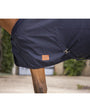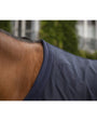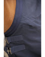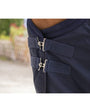 Deux boucles au poitrail et deux sangles qui se croisent sous le ventre. Passage de queue en nylon.