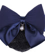 Résille avec filet à mailles fines et double nœud en satin. Le nœud est décoré d'une perle et peut être fixé avec un clip.