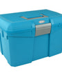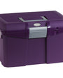 Coffre de pansage bicolore en polypropylène avec couvercle renforcé pouvant faire office de tabouret, de montoir, de siège pour faire la crinière ou natter. Supporte jusqu'à 100 kg. Equipé d'un casier central amovible pour le petit matériel et d'un porte-pinceau amovible. Peut être verrouillé grâce au cadenas réf. 700 016. Vendu sans accessoires.