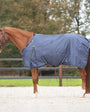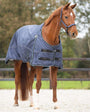 Couverture d’hiver solide, imperméable et respirante avec un garnissage de 300 grammes qui garantit qu’un cheval reste au chaud dans le vent et les basses températures. La couverture a un ajustement modifié au niveau du poitrail afin qu’il n’y ait pas d’espace chez les chevaux avec un poitrail plus large. Un couvre-col peut être attaché aux anneaux en D au niveau du cou.