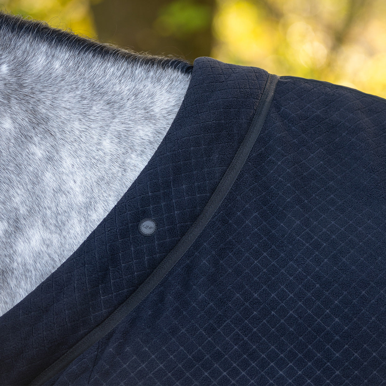 Couverture de luxe de la collection Zahra, avec un motif élégant et un collier assorti. Elle comporte un logo QHP, une double fermeture frontale, des sursangles réglables et un insert en nylon au niveau du poitrail pour éviter les frottements.