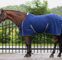 Couverture polaire à utiliser après une séance avec votre cheval pour l'empêcher de se refroidir trop rapidement. La couverture en laine polaire absorbe très bien la transpiration. Cette couverture est à double fermeture frontale et comporte des sur-sangles croisées.