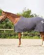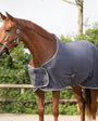 Couverture polaire à utiliser après une séance avec votre cheval pour l'empêcher de se refroidir trop rapidement. Cette couverture comporte des sur-sangles amovibles. Les fermetures avant sont recouvertes d'un rabat de luxe fermé par du velours. Le cordon argenté et les motifs donnent à la couverture un aspect chic.