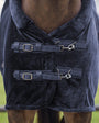 La couverture offre à la fois confort et chaleur et est spécialement conçue pour la peau sensible de votre cheval. Le cordon de queue et les cordons de jambe permettent à la couverture de rester en place.