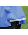 Couverture d’extérieur imperméable et respirante en polyester Ripstop 1200 deniers 3000/3000 avec coutures thermo-soudées, doublure nylon. Découpe d'encolure montante high neck. Equipée d’un très grand rabat de queue imperméable avec bande réfléchissante intégrée, de plis d’aisance, de sursangles croisées basses et de courroies de cuisses. Fermeture de poitrail par fixation rapide, renforcée par bandes auto-agrippantes, avec indication de la taille sur patch en caoutchouc.