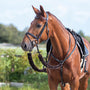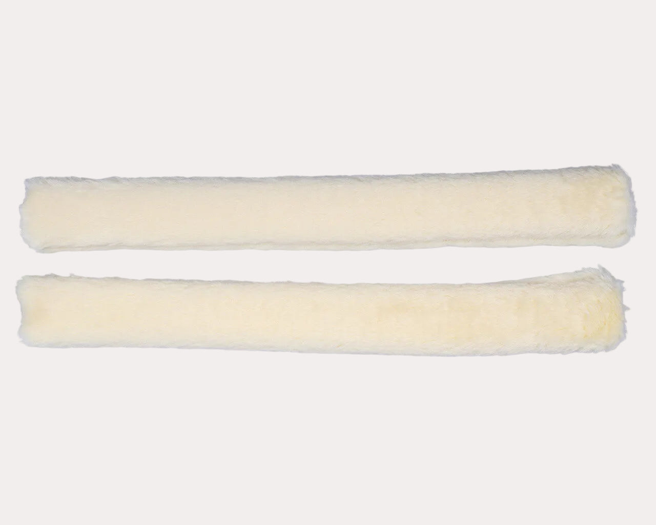 Fourrures de protection de rênes pour protéger l'encolure du cheval contre les dommages causés par les rênes. Les fourrures sont fixées aux rênes à l'aide d'une fermeture à crochets et à boucles.