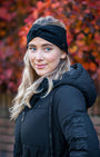 Alarme tendance! Magnifique bandeau chaud avec doublure polaire. Le bandeaux est extra large pour plus de chaleur. L'avant a un très beau motif moderne tressé et le tissu est pourvu d'accents argentés pour un effet pailleté.