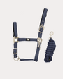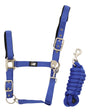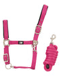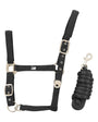 Licol doublé en nylon avec renfort en cuir, boucles chromées, double réglage, complet avec longe