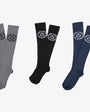 Le souci du détail et la recherche de la qualité constituent l'héritage de valeurs de Cavalleria Toscana. Complétez votre garde-robe d'équitation avec ces chaussettes ergonomiques qui épousent la forme de votre pied. Fabriqué en fil technique aux propriétés hypoallergéniques, antibactériennes et respirantes. L'ensemble se compose de 3 paires de chaussettes de différentes couleurs avec le logo Cavalleria Toscana incrusté au niveau du mollet.