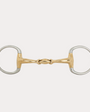 Ce mors à olive double brisure de haute qualité est réalisé en Cuprigan massif avec des anneaux en inox. Le Cuprigan est un alliage composé de 89 % de cuivre, de 7 % d’aluminium, de 3 % de fer et de 1 % de zinc. Le processus d'oxydation du matériau répand une odeur et un goût agréables. La conception anatomique épouse la forme de la bouche du cheval, créant ainsi une répartition de la pression douce et uniforme. La combinaison de la conception et de l’unique composition du Cuprigan permettent de stimuler la mastication et la salivation, de sorte qu’il en résulte une liaison délicate avec la bouche sensible du cheval. Le mors a une action douce dans la bouche. L’épaisseur du canon est de 16 mm et le diamètre des rondelles de mors ovales est de 55 mm.