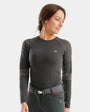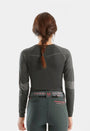 Pour améliorer le maintien du corps de la cavalière à cheval, le T-shirt Optimax dispose d'une technologie de correction posturale. Les différents tricotages amènent une réponse technique adaptée, suivant leur positionnement, afin de renforcer l'effet de gainage à la taille et de maintien du buste. Grace à différents niveaux d’élasticité dans la partie supérieure du dos, les épaules de la cavalière sont maintenues en arrière. Nous avons construit le vêtement de manière à ce qu’il comporte le moins de coutures possible, dans une matière ayant un bon transfert d'humidité pour un confort d'usage optimal pendant l'effort. Par temps frais ou froid, c’est une excellente première couche à porter sous une veste doublée plus ou moins légère selon la température extérieure. Par temps plus doux voire chaud, il se porte parfaitement seul.