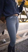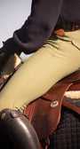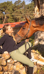 Son tissu doux et extensible, associé à un grip en silicone discret en rappel au logo, assure une excellente adhérence en selle et un maintien optimal, que ce soit à la maison ou en concours.