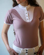 Le polo se ferme devant avec des vrais boutons en métal argenté. Petit logo en silicone brillant sur la manche gauche.