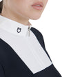 Simple, raffiné et extrêmement confortable grâce à son tissu extensible et respirant qui rend le polo adapté à la saison estivale. Il présente une fermeture zippée avec système coupe-vent et un col mao en coton avec le logo Equestro.