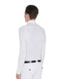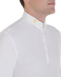 Polo de compétition slim fit pour homme en polaire, tissu technique extensible et respirant. Sa coupe anatomique garantit un ajustement parfait et une liberté de mouvement totale. Ce vêtement est doté d'une fermeture pratique à quatre boutons et d'un col boutonné. Ce polo est unique grâce au logo Equestro en silicone.