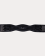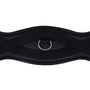 Très jolie sangle de dressage noire, fabriquée dans un matériau solide. Parce que la sangle est de forme anatomique, elle offre plus de confort et de liberté de mouvement. La sangle a un anneau au milieu pour attacher des rennes allemandes.