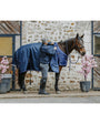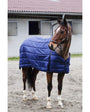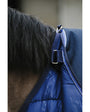 Sous-couverture 1200D en nylon matelassé avec du polyfil, pattes de fixation au niveau de l'encolure et mousquetons à l'arrière pour la fixer sur les anneaux de courroies de cuisses des couvertures classic 1200D. Logo carré EQUITHEME sur le pli d'aisance et logo EQUITHEME rond à l'arrière du côté gauche de la couverture. Fermeture avant par velcro