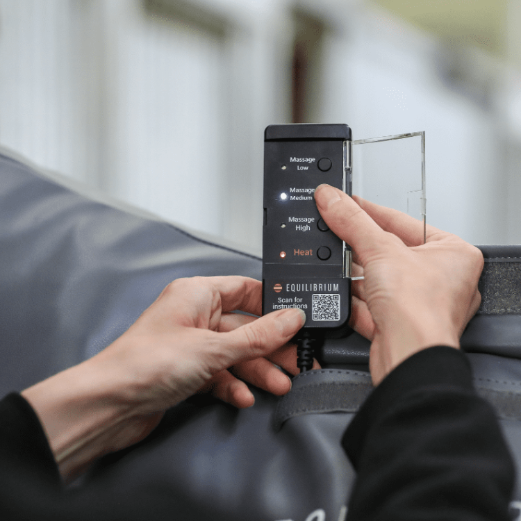 Le tapis de massage chauffant Equilibrium, équipé de 6 têtes de massage judicieusement réparties sur une plus large surface, est l'idéal pour un grands nombre de chevaux.
