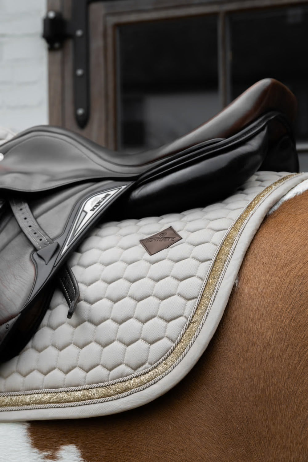 Confectionné dans un mélange de coton et de polyester à motif nid d'abeille et à séchage rapide, ce tapis de selle assure le confort de votre cheval, même lors des séances d'entraînement intenses. Le rembourrage intérieur est respirant et assure un amorti efficace entre la selle et le dos de votre cheval. Le logo Kentucky cousu, en cuir vegan de première qualité, témoigne de la qualité Kentucky.