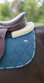 L’iconique tapis Love GEM, le best-seller des tapis ! Vous allez tomber amoureux de son bord en coton brodé de logos GEM blancs, qui lui apporte un côté sport. Nous utilisons un tissu interne technique nommé 3D ou Mesh. Ultra-respirant, il diminue la transpiration du cheval sous la selle et permet un séchage rapide du tapis. Les fibres qui le composent accentuent son pouvoir amortissant. Volontairement fin pour une meilleure proximité avec son cheval. L'intérieur est composé d'une ouate de 200g, amortissante et respirante.