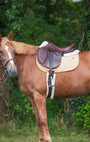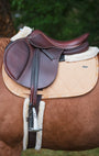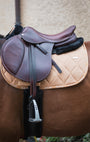 Nous utilisons un tissu interne technique nommé 3D ou Mesh. Ultra-respirant, il diminue la transpiration du cheval sous la selle et permet un séchage rapide du tapis. Les fibres qui le composent accentuent son pouvoir amortissant. Volontairement fin pour une meilleure proximité avec son cheval. L'intérieur est composé d'une ouate de 200g, amortissante et respirante.