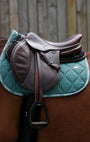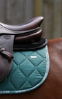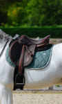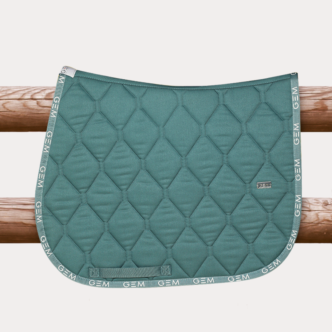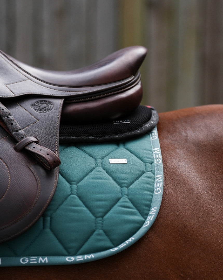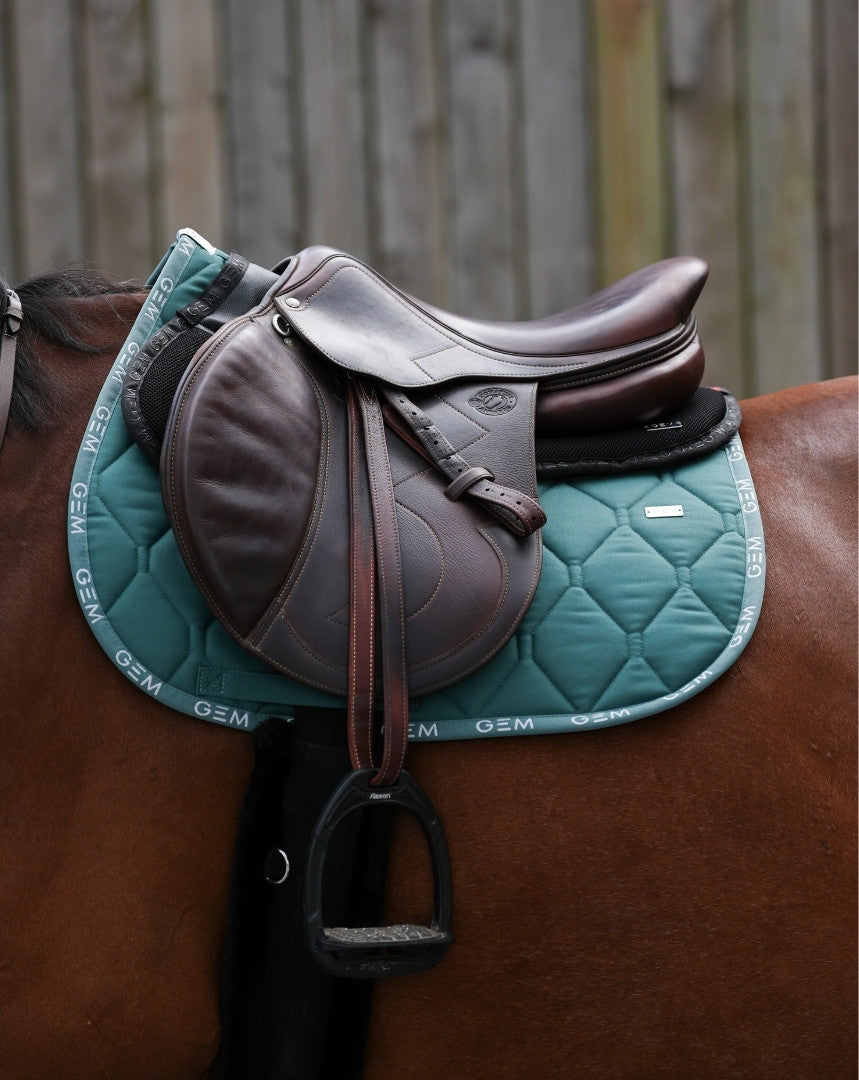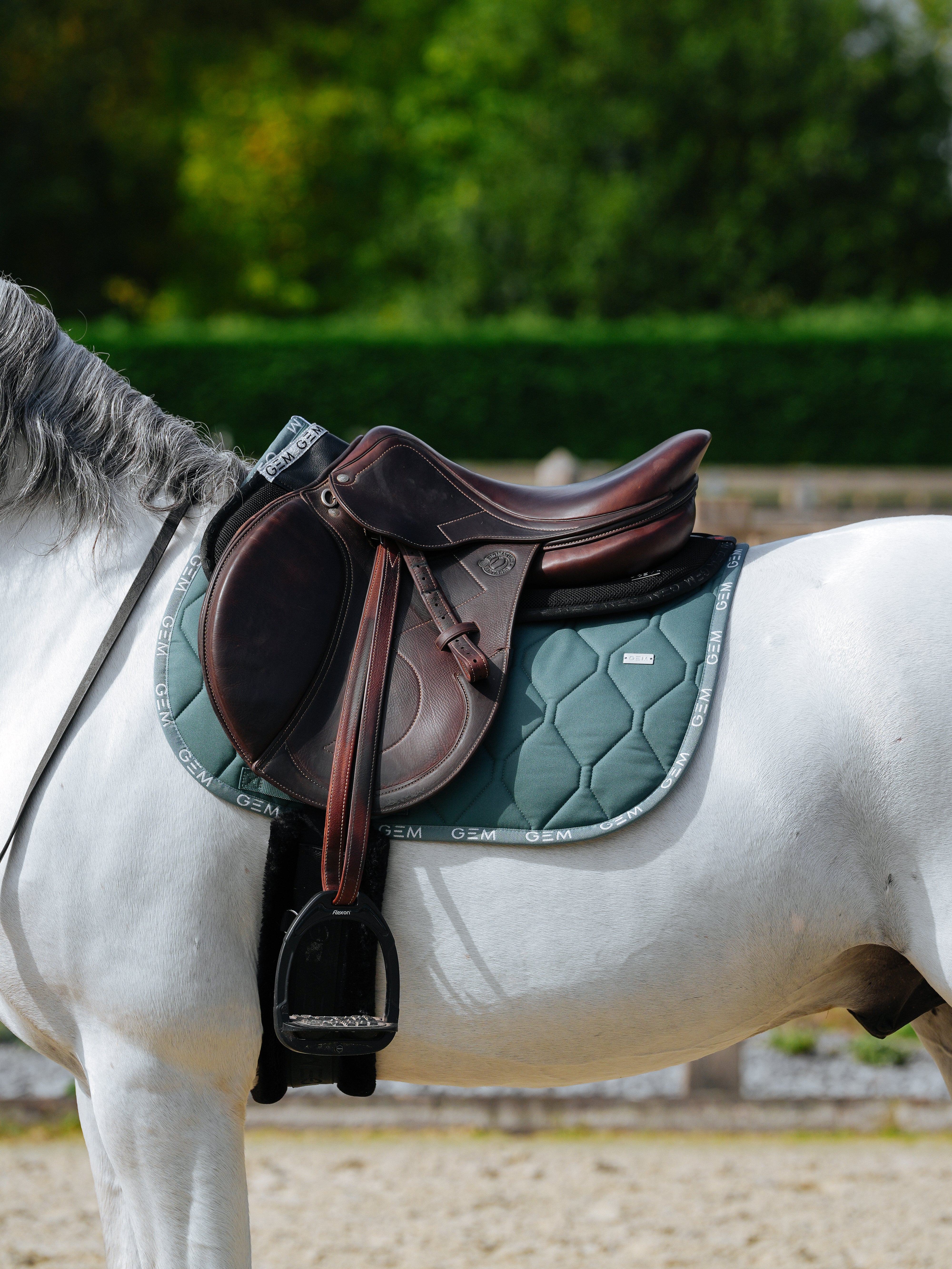 Nous utilisons un tissu interne technique nommé 3D ou Mesh. Ultra-respirant, il diminue la transpiration du cheval sous la selle et permet un séchage rapide du tapis. Les fibres qui le composent accentuent son pouvoir amortissant. Volontairement fin pour une meilleure proximité avec son cheval. L'intérieur est composé d'une ouate de 200g, amortissante et respirante.