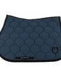 Tapis de selle d'obstacle en tissu technique de pointe garantissant une respirabilité exceptionnelle et un excellent amorti entre la selle et le dos du cheval. Sa structure alvéolée innovante favorise une ventilation optimale, assurant une circulation d'air régulière et réduisant la transpiration du cheval pendant l'effort. Sa forme anatomique est spécialement conçue pour éviter toute pression ou frottement indésirable au niveau du garrot, permettant ainsi au cheval de se mouvoir librement et confortablement. Un matelassage circulaire décoratif apporte une touche d'élégance et renforce la structure du tapis. Ce tapis de selle est le fruit d'une conception méticuleuse visant à créer un produit offrant une synergie parfaite entre robustesse, respirabilité et raffinement. Le logo brodé contrastant sur le côté gauche constitue un détail distinctif témoignant du souci du détail.