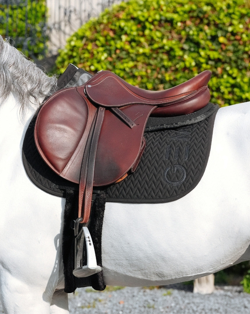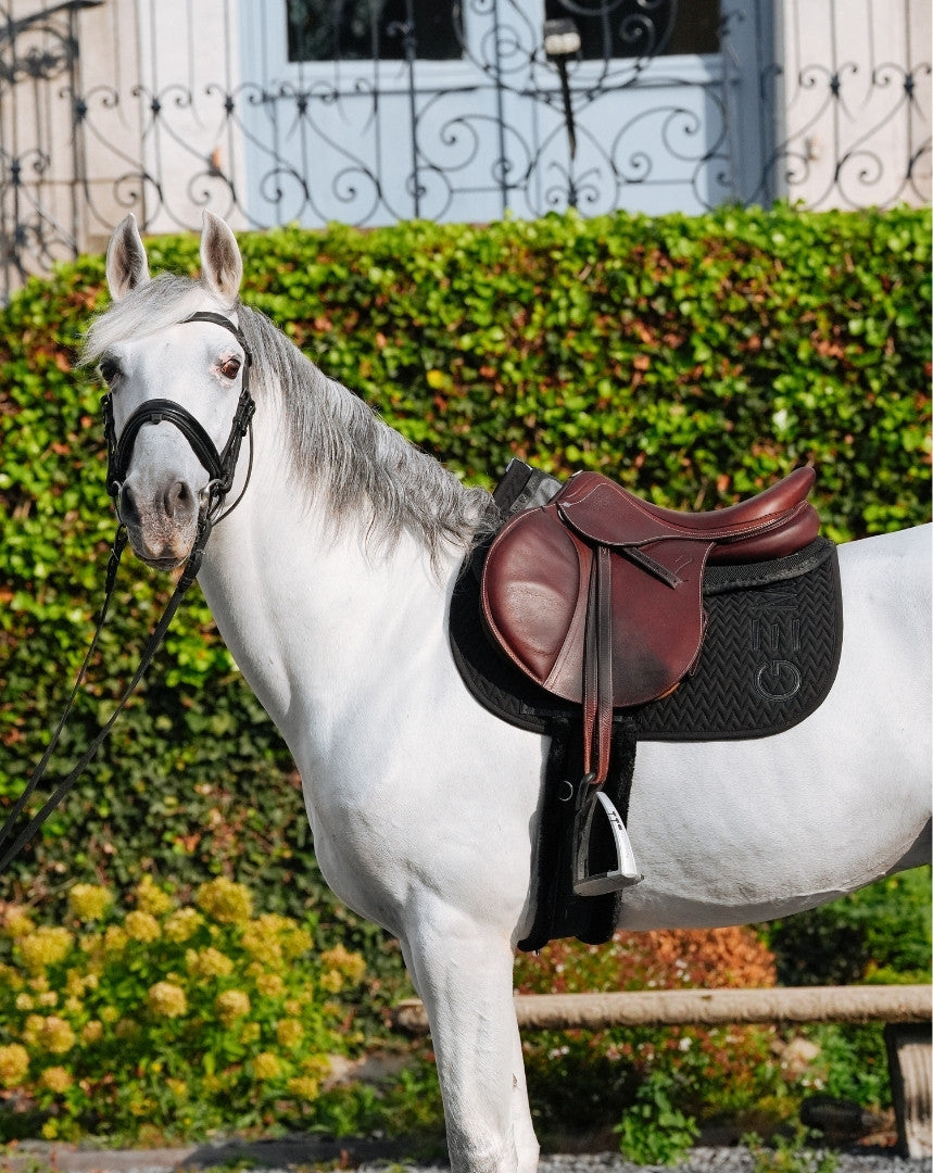 Intérieur du tapis en matière mesh 3D, qui garantit une absorption optimale de la transpiration, et un confort maximal pour le dos de votre cheval.