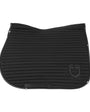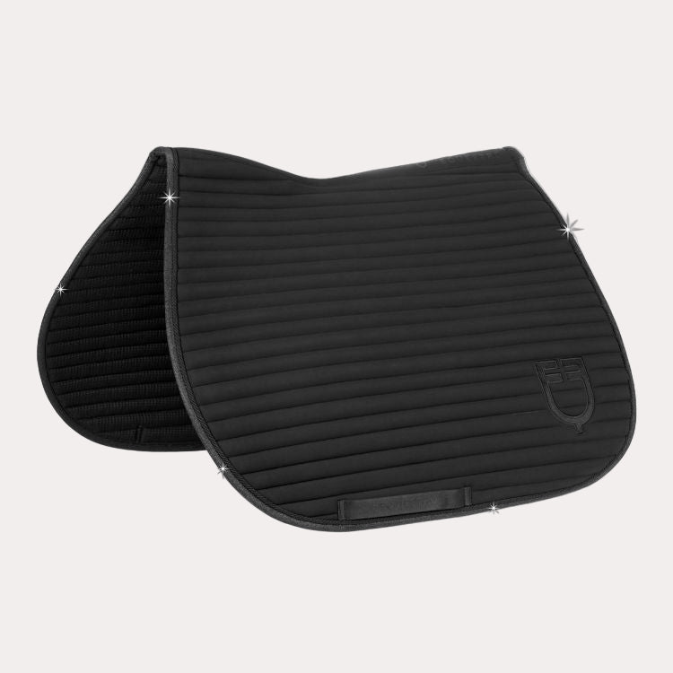 Le tapis de selle Universe Stripe est conçu pour offrir un confort optimal au cheval et une stabilité parfaite de la selle, que ce soit sur le plat ou en concours de saut d'obstacles. Fabriqué en matériaux techniques respirants, il présente un matelassage à rayures horizontales qui assure une répartition uniforme de la pression et réduit ainsi les frottements. Sa coupe anatomique permet un ajustement parfait au dos du cheval, tandis que ses bords renforcés par un tissu brillant et ses boucles de fermeture auto-agrippantes garantissent un maintien sûr et durable. Le logo brodé ton sur ton apporte une touche distinctive et discrète, idéale pour ceux qui recherchent un style à la fois simple et raffiné.