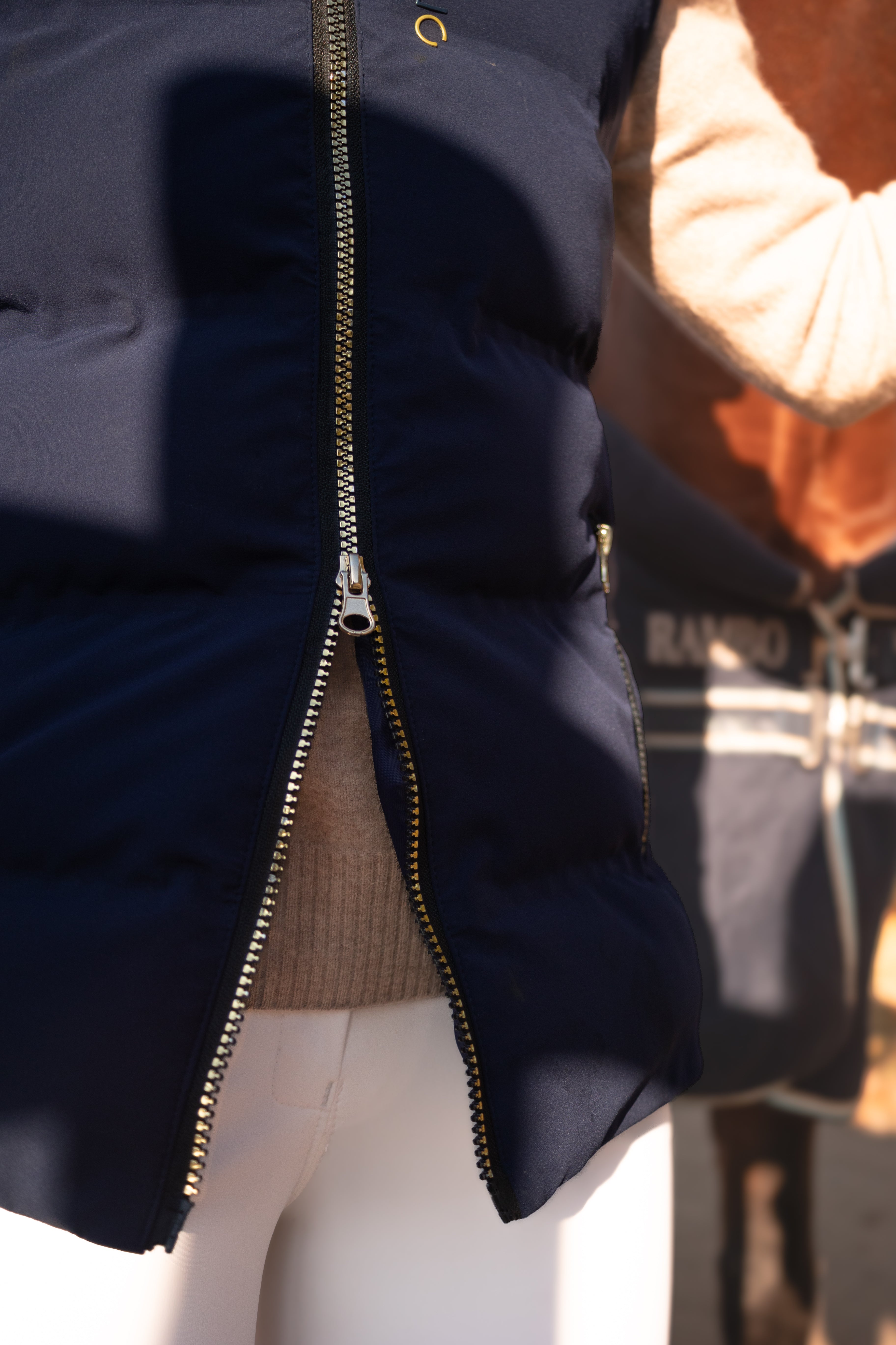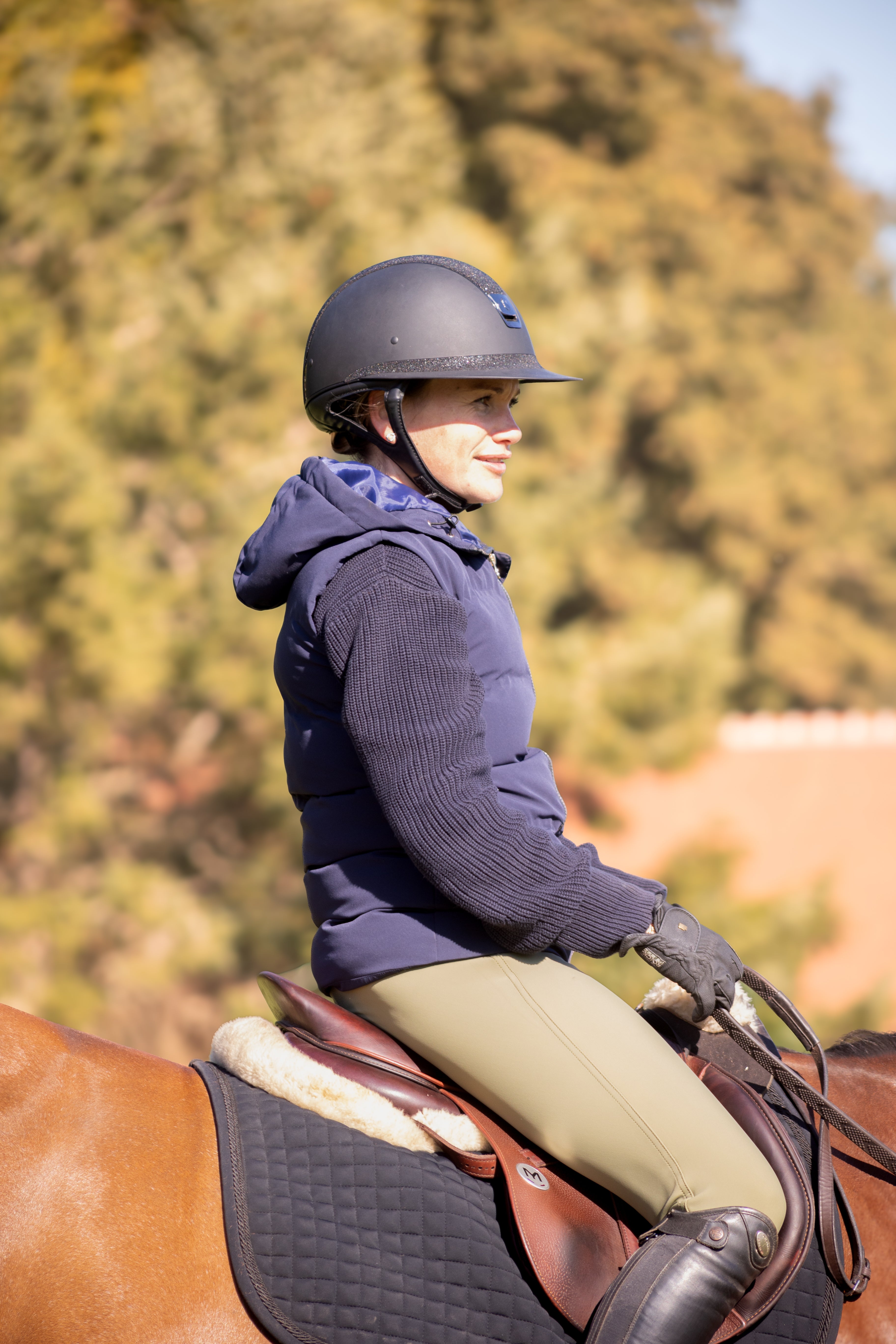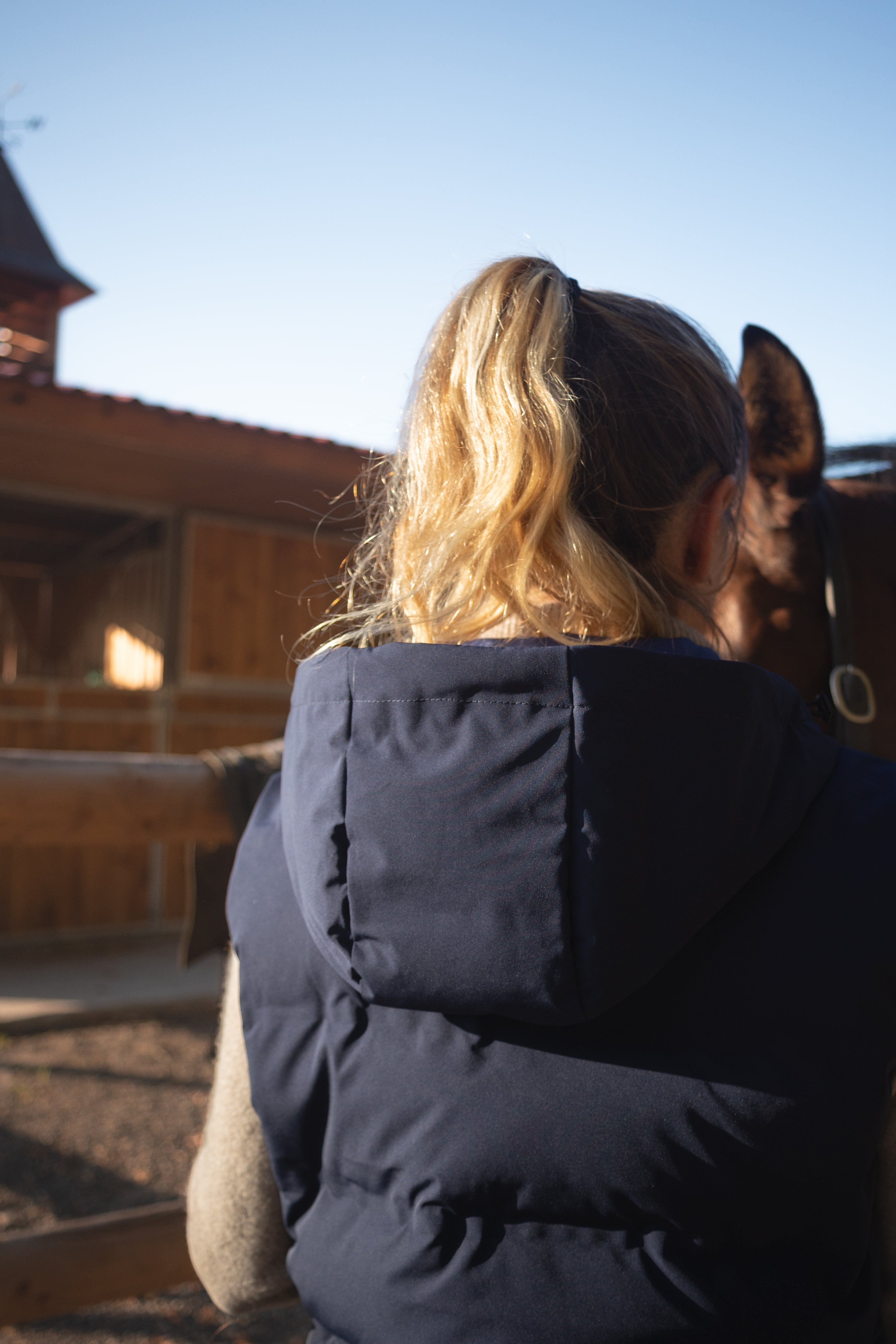 Alliez élégance et confort avec la doudoune sans manches Mia signée Optitro, pensée pour les cavalières qui recherchent à la fois style et technicité. Son coloris marine intemporel et sa coupe cintrée soulignent la silhouette tout en garantissant une grande liberté de mouvement, aussi bien à cheval qu’à l’écurie.